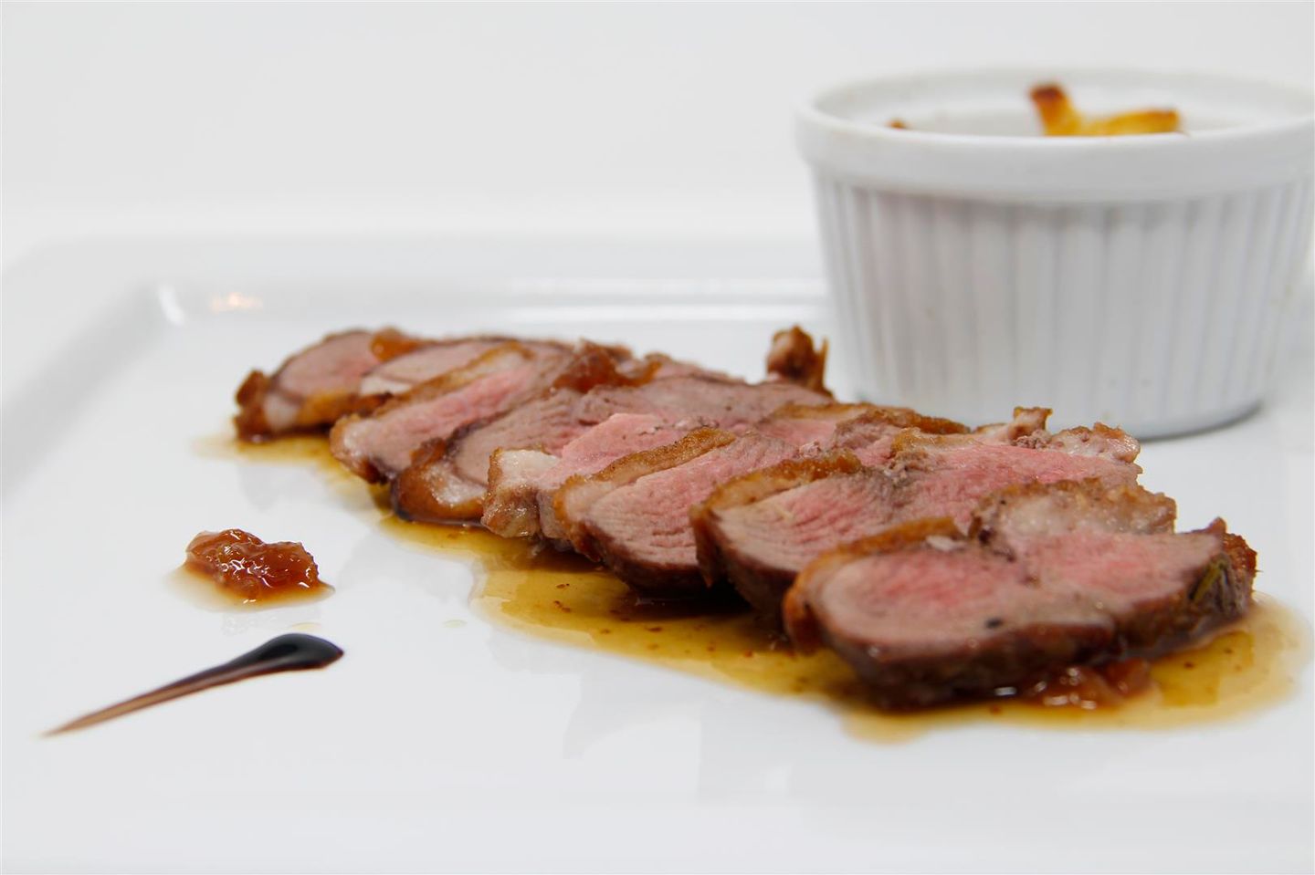 Papreni njoki s pjenom od sira, orasima, grožđicama i rakijom od kuša / Pačja prsa u umaku od istarskog muškata i meda / Kruške u crnom vinu na kremi od mascarponea i meda