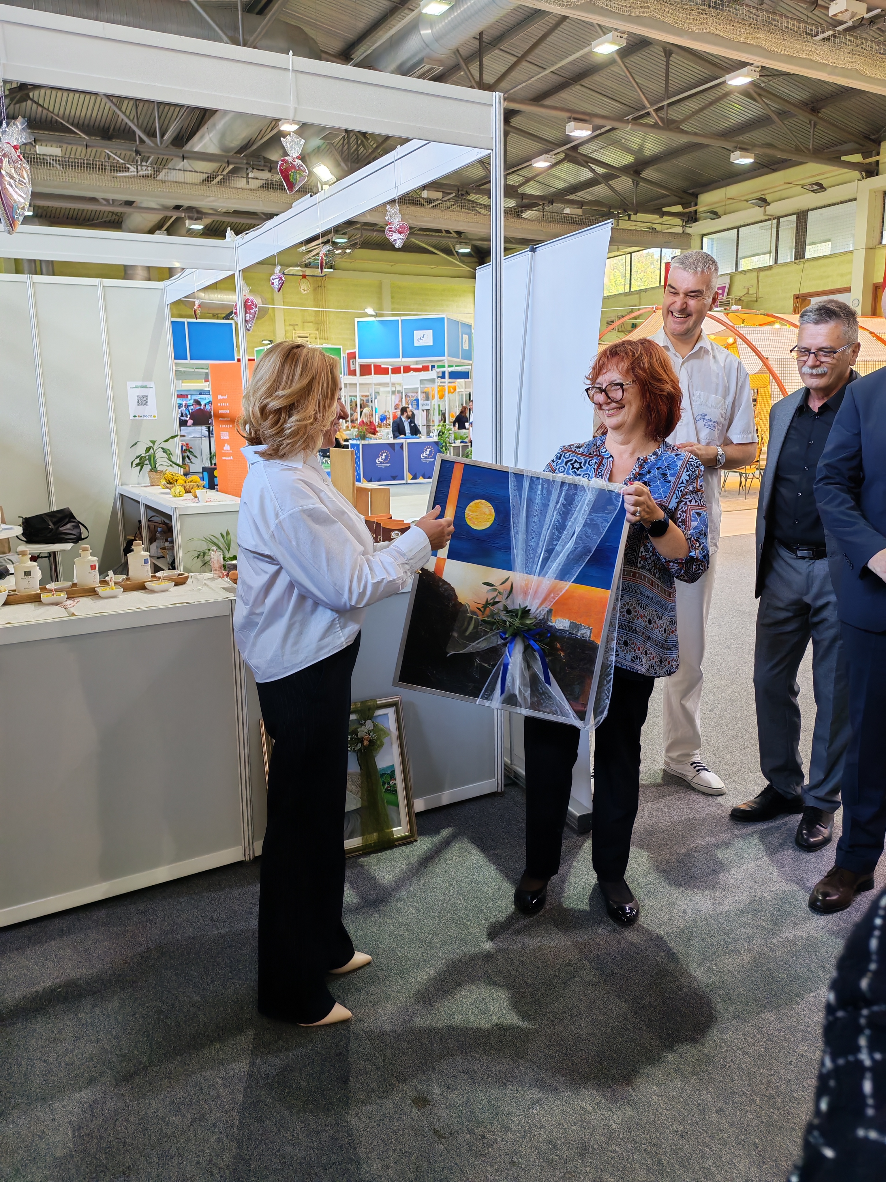 U znak obilježavanja 15. obljetnice naše suradnje, predsjednica Udruženja obrtnika gradova Donja Stubica, Oroslavje i općina Marija Bistrica, Gornja Stubica, Stubičke Toplice Zvjezdana Dekan uručila je prigodan poklon predsjednici Udruženja obrtnika Buzet Loredani Krbavčić - ulje na platnu, djelo obrtnice iz Donje Stubice Jane Đurđević, slika s motivom Gupčevog kraja.