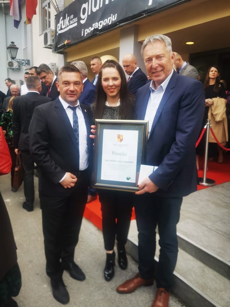 U ime Obrtničke komore Krapinsko-zagorske županije s osobitim zadovoljstvom ističemo kako je među dobitnicima županijskih priznanja OBRT ZA UGOSTITELJSTVO I TURIZAM „ZELENJAK VENTEK“ vlasnice Dore Greblički Kos, članice Ceha ugostitelja OKKZŽ iz Risvice kojoj je dodijeljena POVELJA Krapinsko-zagorske županije za izniman doprinos očuvanja zagorske tradicije i kulturne baštine te za doprinos razvoja turističke djelatnosti na području Krapinsko-zagorske županije.
