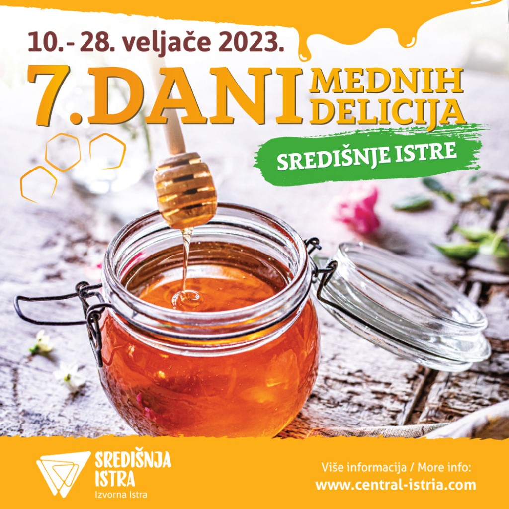 Ovogodišnji 7. Dani mednih delicija središnje Istre bit će održani od 10. do 28. veljače, a naši će ugostitelji u svojim objektima tijekom tog razdoblja nuditi razne delicije obogaćene pčelinjim proizvodima, kao uvertiru u manifestaciju Dani meda, koji se ove godine vraćaju u Pazin. Idealna je to prilika da namirnicu kojom inače osnažujemo imunitet u doba sezonskih virusa i bakterija – med – kušate u kombinaciji tradicionalnih istarskih jela koja za vas pripremaju naši ugostitelji. A onda, 24. i 25. veljače, prošetajte sajmom na Danima meda, kupite med lokalnih proizvođača jer zima još uvijek nije gotova.