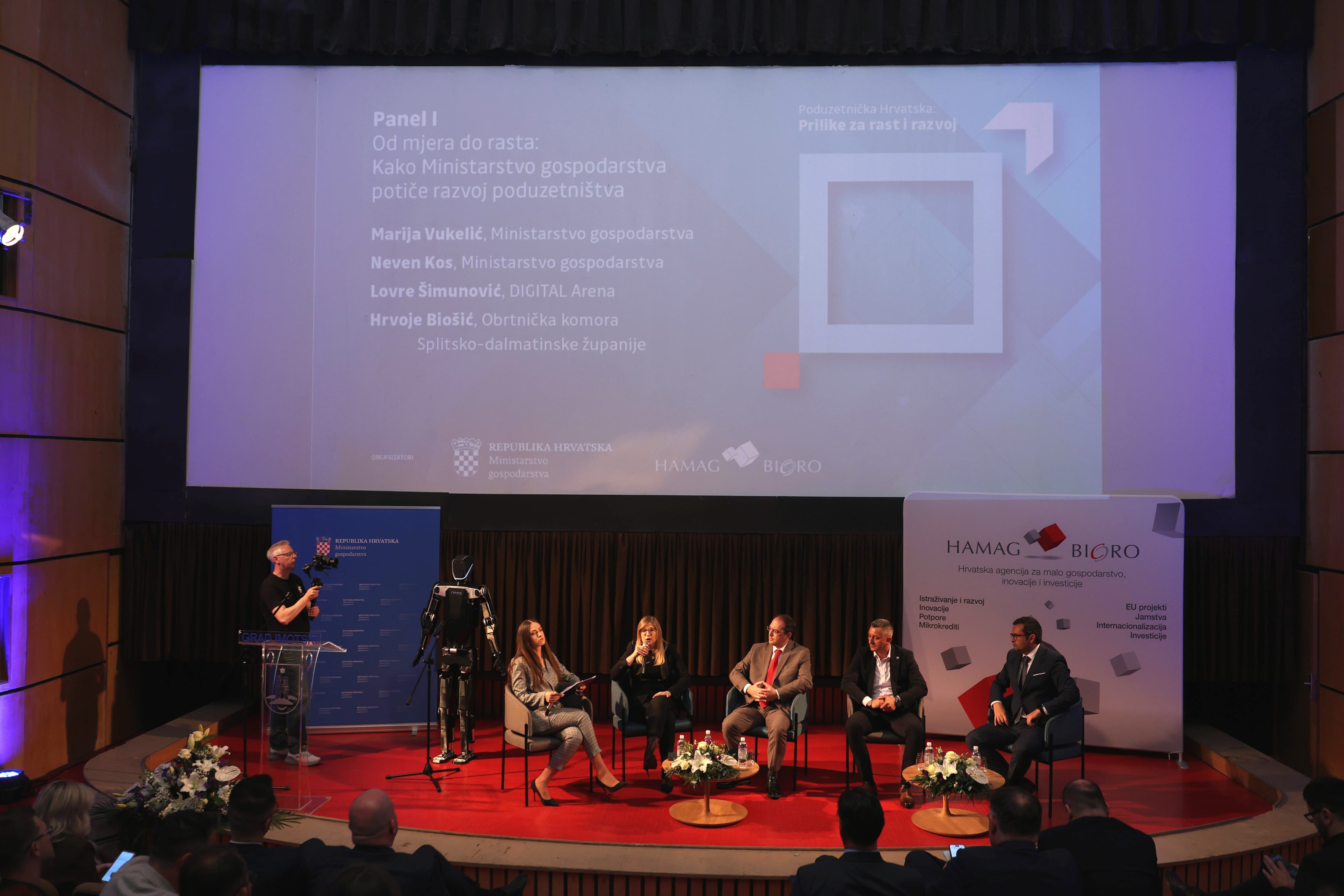 U sklopu konferencije „Poduzetnička Hrvatska: Prilike za rast i razvoj“, koja je jučer održana u Imotskom u organizaciji Ministarstva gospodarstva i HAMAG-BICRO-a, održan je panel „Od mjera do rasta: Kako Ministarstvo gospodarstva potiče razvoj poduzetništva“.