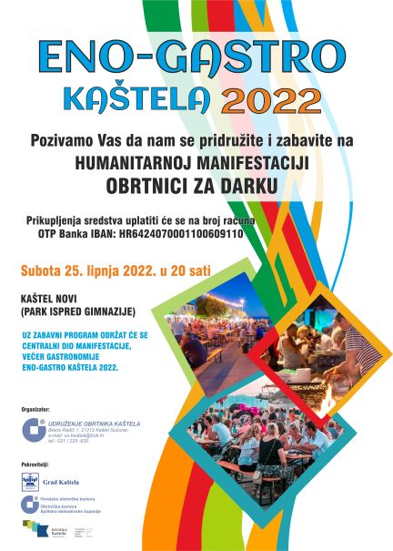 Udruženje obrtnika Kaštela pod pokroviteljstvom Grada Kaštela, Turističke zajednice grada Kaštela, Hrvatske obrtničke komore i Obrtničke komore Splitsko-dalmatinske županije već tradicionalno osmu godinu organizira manifestaciju ENO GASTRO KAŠTELA .