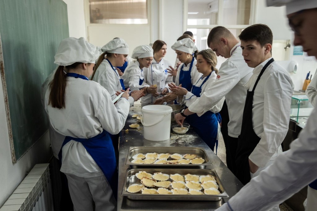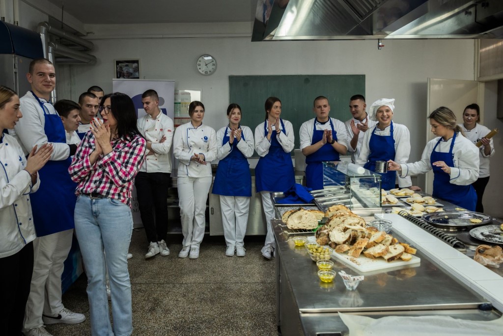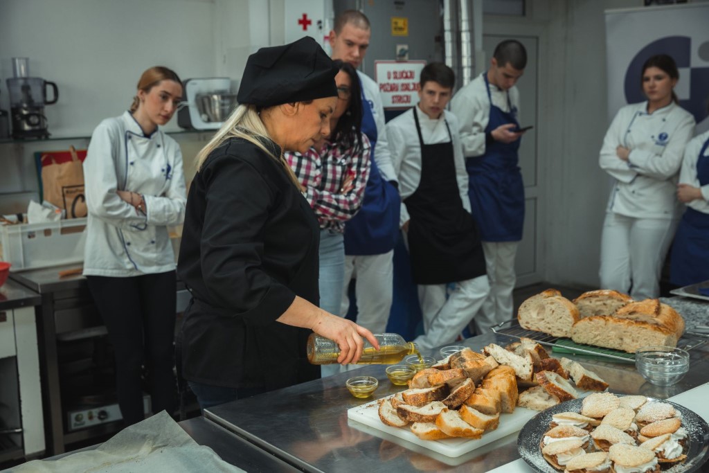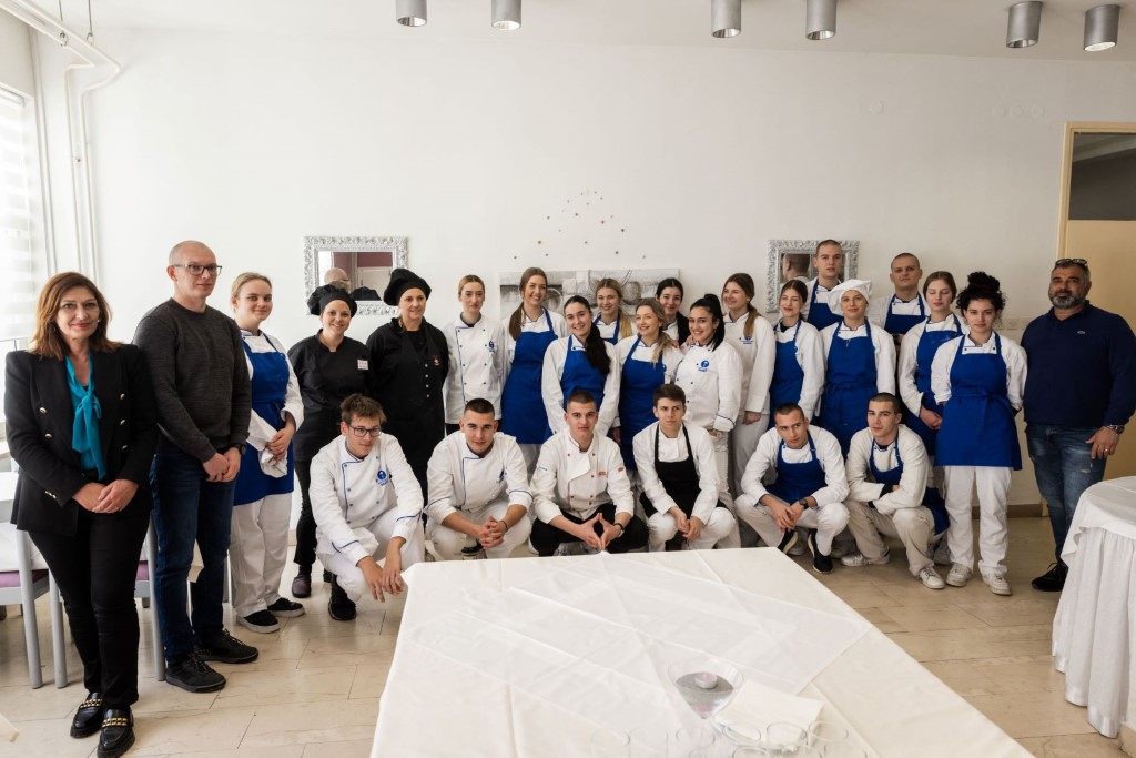 20 učenika četvrtog razreda smjera turističko-hotelski komercijalist proveli su jutro u školskoj kuhinji pomno prateći rad svojih mentorica koje su im kroz svoj nastup prenijele važnu poruku da je uživotu važno raditi ono što voliš.