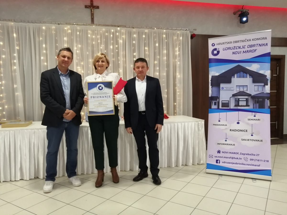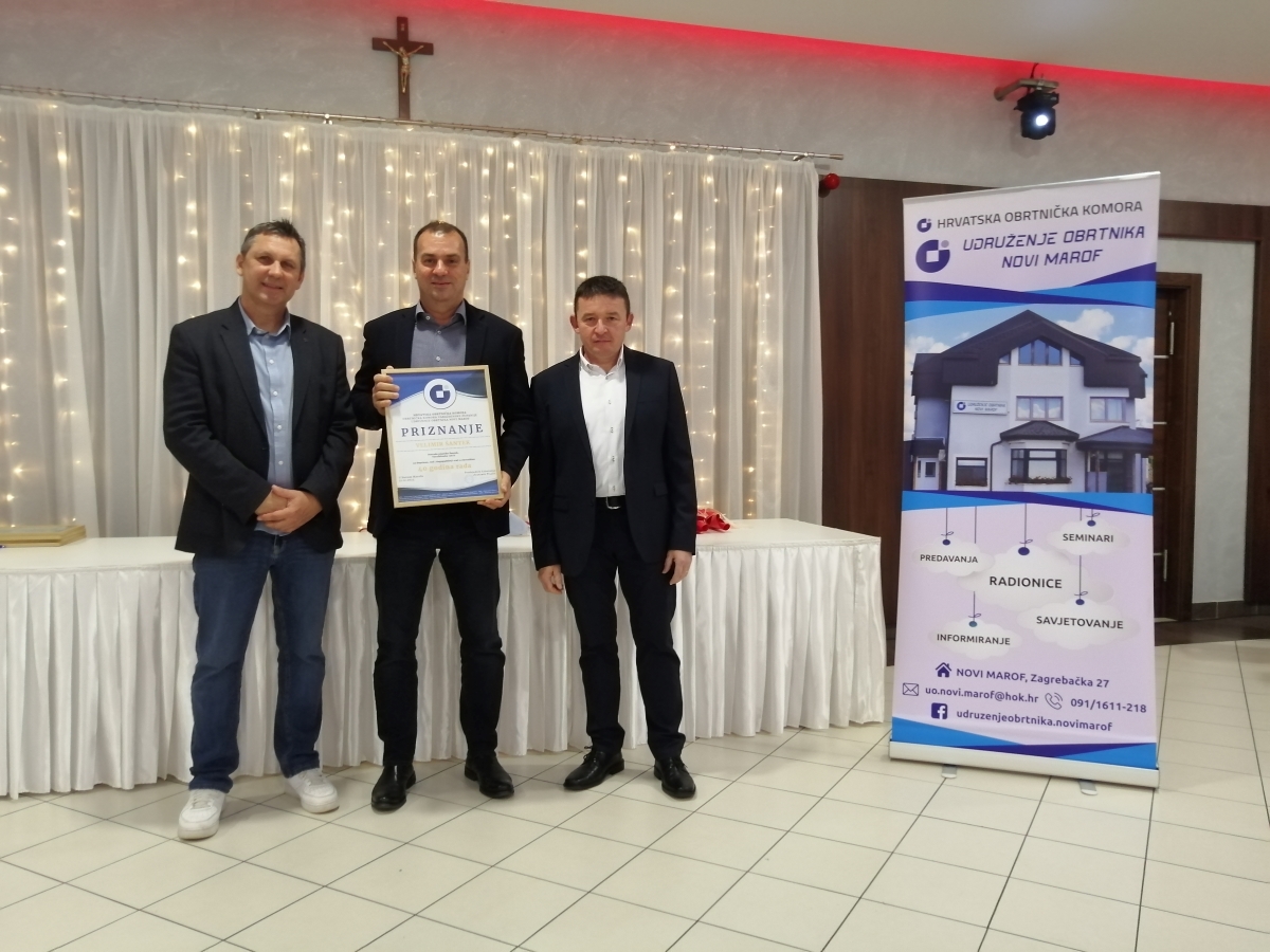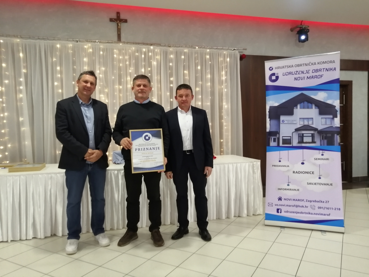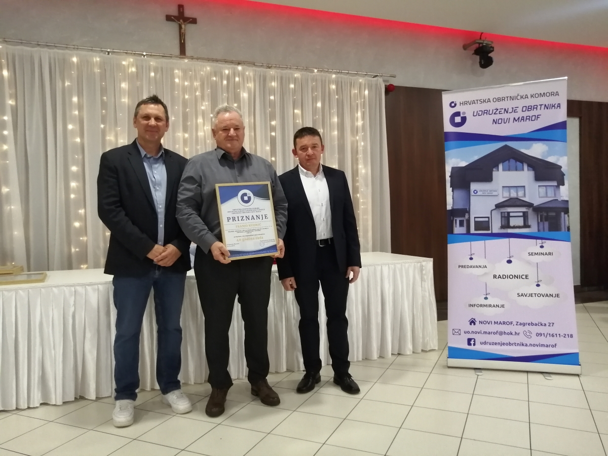 Na svečanoj sjednici uručena su i priznanja članovima Udruženja za dugogodišnji rad u obrtništvu. Priznanja za 10 godina rada u obrtništvu dodijeljena su: Nikoli Oštreku (građevinski obrt „Oštrek gradnja“ iz Gornjeg Makojišća), Marijanu Rabuzinu (obrt za keramičarske radove „Keramika siba“ iz Ključa), Draženu Štrigi (obrt za knjigovodstvene usluge „Konto“ iz Ljubešćice), Alenu Horvatu (obrt za ugostiteljstvo, trgovinu i usluge „Slim“ iz Možđenca), Juraju Pupeku (obrtza prijevoz iz Madžareva), Dijani Omić (obrt za aranžiranje i izradu vjenčanog asortimana „Savio style“ iz Grane). Priznanja za 20 godina rada u obrtništvu primili su: Marijan Ferenđa (Cvjećarnica Orhideja iz Novog Marofa), Nenad Zrinjski (autorservis i trgovina iz Remetinca), Tomislav Nofta (obrt za proizvodnju proizvoda od metala i tiskanje iz Varaždinskih Toplica), Andrijana Šarc, (pekarski obrt „Nina“ iz Topličice). Priznanja za 30 godina obrtništva dobili su: Dražen Tepeš (stolarski obrt „Stolarija Tepeš“ iz Novog Marofa), Ivan Slunjski (ugostiteljski obrt „Z3“ iz Završja Podbelskog), Ivanka Šafran (frizerski obrt iz Oštrica), Ivica Kišak (autoprijevoznik iz Krča), Mario Zagorec (Ribogojilište Belski dol iz Bele), Zdravko Vuradin( građevinski obrt „Grading“ iz Novog Marofa), Vladimir Pintač (obrt za postavljanje telefonske mreže i instalacija i elektroinstalacija), Stjepan Mikulčić (ugostiteljski obrt Europa iz Ljubešćice). Priznanja za 40 i više godina obrtničkog rada dodijeljena su: Franji Kuzmiću, vlasniku Plastilakelektronic, obrta za izradu pribora, opreme i uređaja u elektronici, plasificiranje i sitotisak iz Pake, zatim Ivici Žegeru, vlasniku Stolarske obrtničke radionice iz Podruta, Ivančici Šumečki, vlasnici frizerskog salona Aurora iz Varaždinskih Toplica i Velimiru Šanteku, vlasniku obrta Prerada plastike Šantek iz Novog Marofa). Priznanja laureatima uručili su Zvonimir Pisačić, predsjednik Udruženja obrtnika Novi Marof i Igor Šoković, predsjednik Županijske obrtničke komore. U ime nagrađenih zahvalio je Franjo Kuzmić, vlasnik obrta koji uspješno posluje već 42 godine.