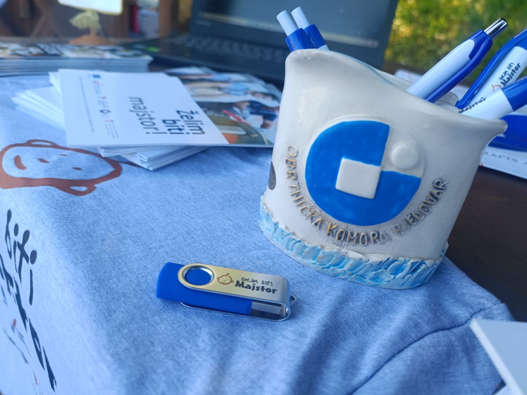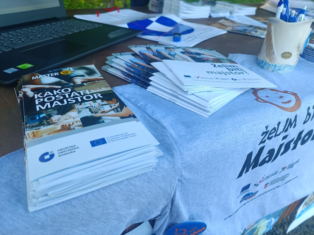 Nastavnici iz strukovnih škola koji su sudjelovali na susjednim info pultovima dobili su informacije o polaganju majstorskog ispita te su im podijeljeni letci s informacijama o istom. Naš info pult bio je popraćen citatima proizašlim iz projekata Hrvatske obrtničke komore. Također, privukli smo i učenike koji su odlučili upisati gimnaziju, a koje je zanimalo što nudi Obrtnička komora. Nastavnicima iz osnovnih i srednjih škola te učenicima zainteresiranim za obrtnička zanimanja, podijelili smo letke o upisu obrtničkih zanimanja i majstorskim ispitima.