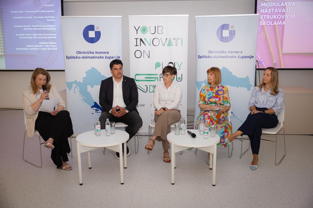Sudionici su razgovarali o praktičnoj primjeni modularnih kurikuluma, važnosti učenja temeljenog na radu te ulozi poslodavaca u procesu obrazovanja budućih stručnjaka. U panel raspravi sudjelovale su Mirela Lekić i Antonija Tretinjak iz Hrvatske obrtničke komore, Tomislav Đonlić iz Splitsko-dalmatinske županije te Antonija Tomić iz Agencije za strukovno obrazovanje i obrazovanje odraslih.