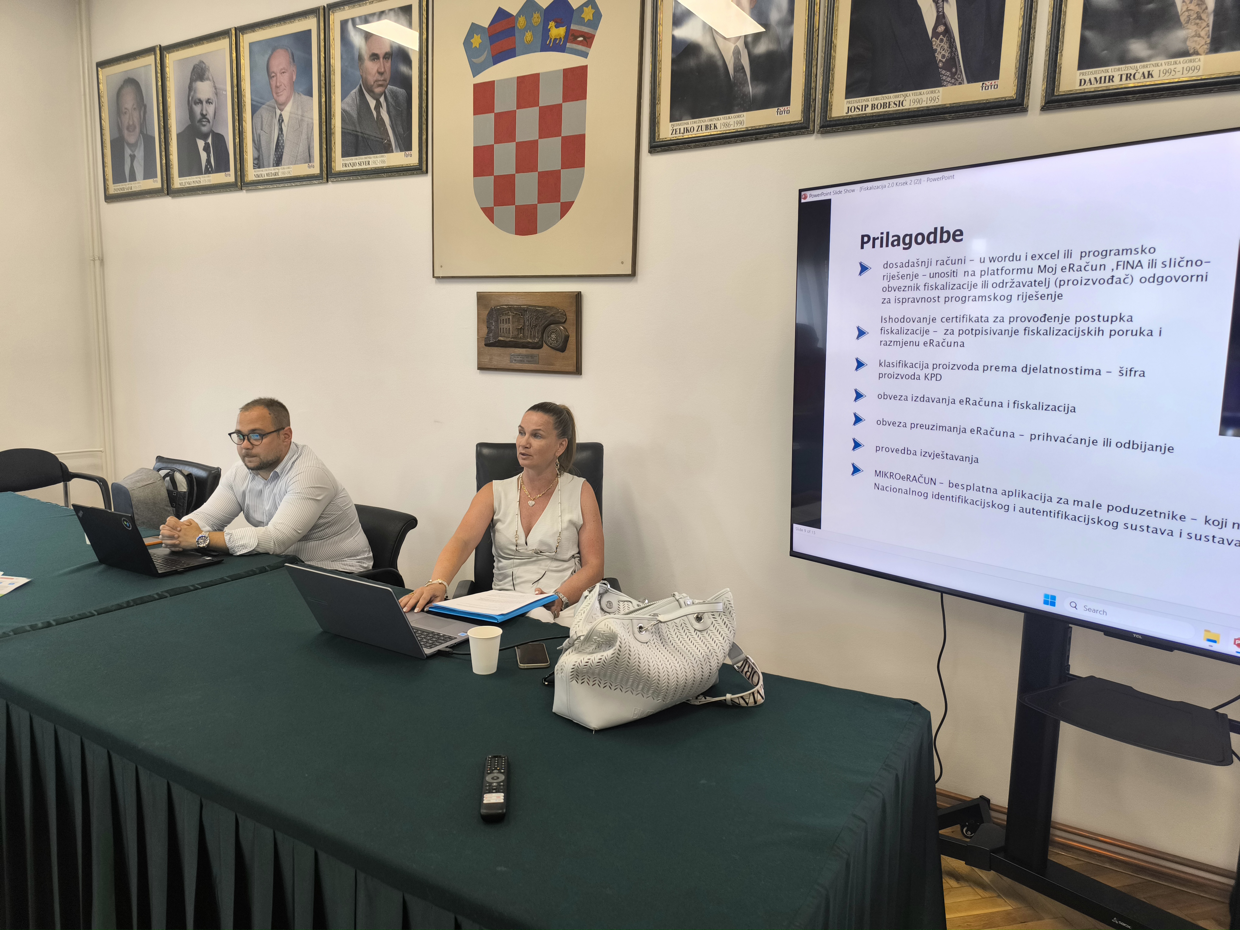 Predavači Marina Kršek, bac. oec , vlasnica knjigovodstvenog servisa „Next grupa“ iz Velike Gorice ispred Udruženja Obrtnika Velika Gorica i Sekcije računovođa Obrtničke komore Zagreb, te predstavnici tvrtke Elektronički račun upoznali su prisutne sa svim važnim informacijama, promjenama i novostima koje će nastupiti primjenom Zakona o fiskalizaciji 2.0.