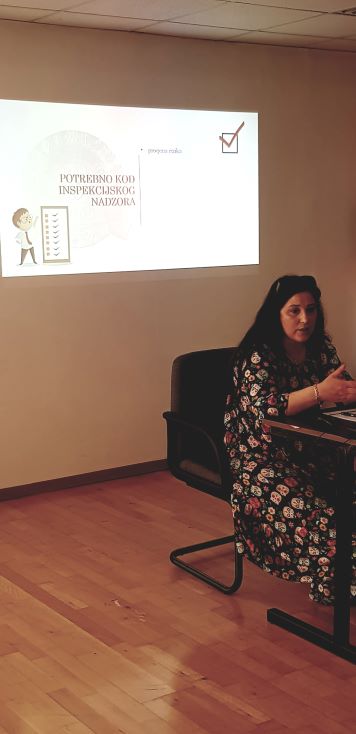 Radionicu je održala gospođa Emanuela Dadić iz Državnog inspektorata koja je istaknula i važnost ovog tipa suradnje Obrtničke komore s inspektoratom u cilju edukacije obrtnika, a sve kako bi oni pravilno poslovali i kako bi se kažnjavanje obrtnika od strane inspekcija svelo na najmanju moguću mjeru.