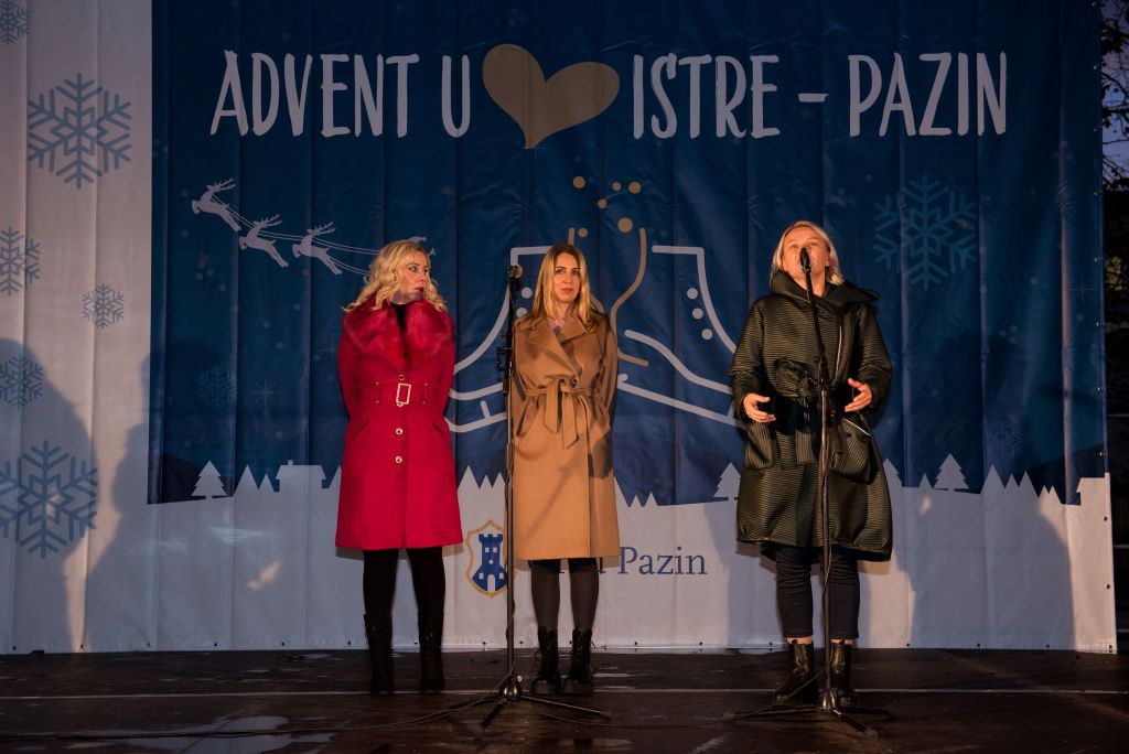 Puno svjetla, mirisa fritula, palačinki, pršuta i kuhanog vina koji su se širili iz adventskih kućica, velik broj djece u redu za klizaljke te oni koji su već nizali svoje prve metre na klizalištu, obilježili su početak blagdanske čarolije u Pazinu.