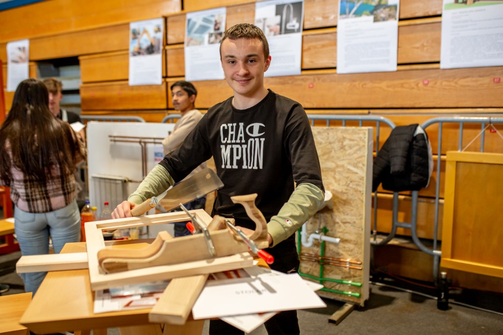 Graditeljska škola Čakovec pokazala je svu kreativnost graditeljskih zanimanja, pa smo na njihovom štandu zidali, lijepili keramiku, vrtili lončarsko kolo, rezali cijevi, konstruirali namještaj, a budućim učenicima predstavila su se i dizajnerska zanimanja.