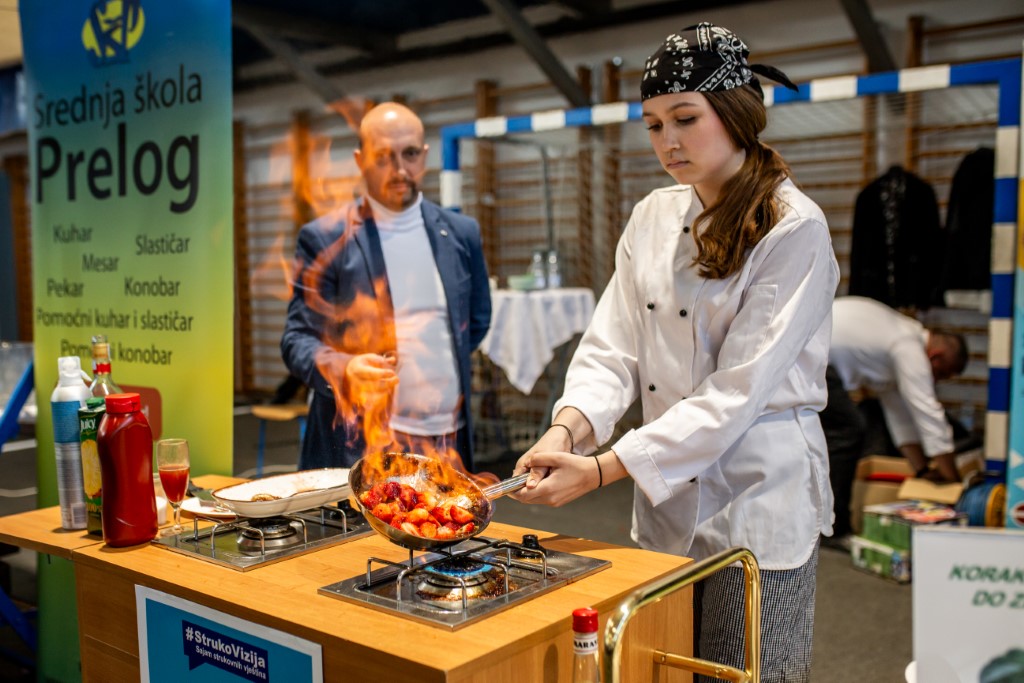 Srednja škola Prelog prezentirala je svoja ugostiteljska zanimanja i zanimanja iz područja ekonomije i financija. Na njihovom živopisnom štandu pokazali su nam kako biti kreativan i ekološki osviješten, učili smo kako napraviti bezalkoholne koktele ili flambirati jagode, a gost Tomislav Špiček okupio je velik broj posjetitelja u igri pogađanja.
