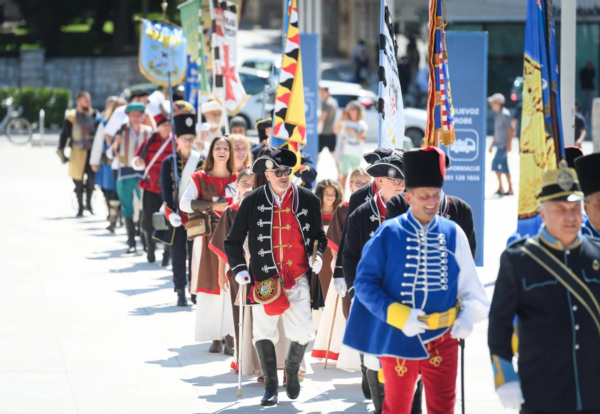 Gradom su prodefilirali i Šibenska gradska straža zajedno sa 16 povijenih postrojbi iz cijele Hrvatske, a vrhunac sajma označilo je atraktivno uprizorenje pomorske bitke iz 1378. godine na obali ispred Muzeja grada Šibenika.