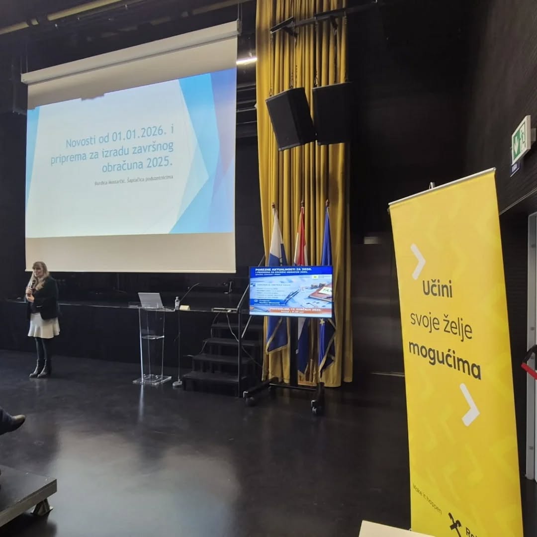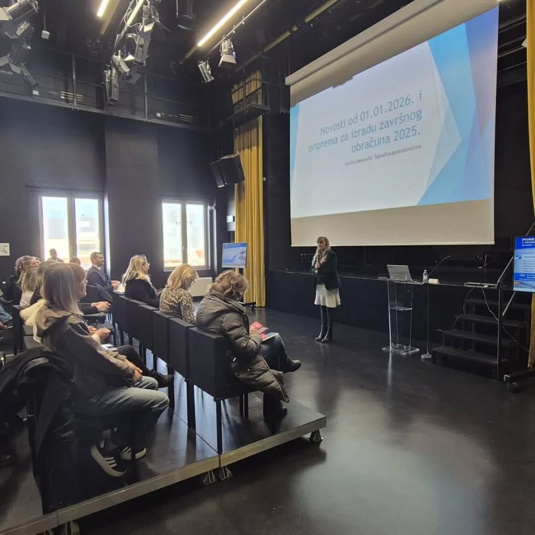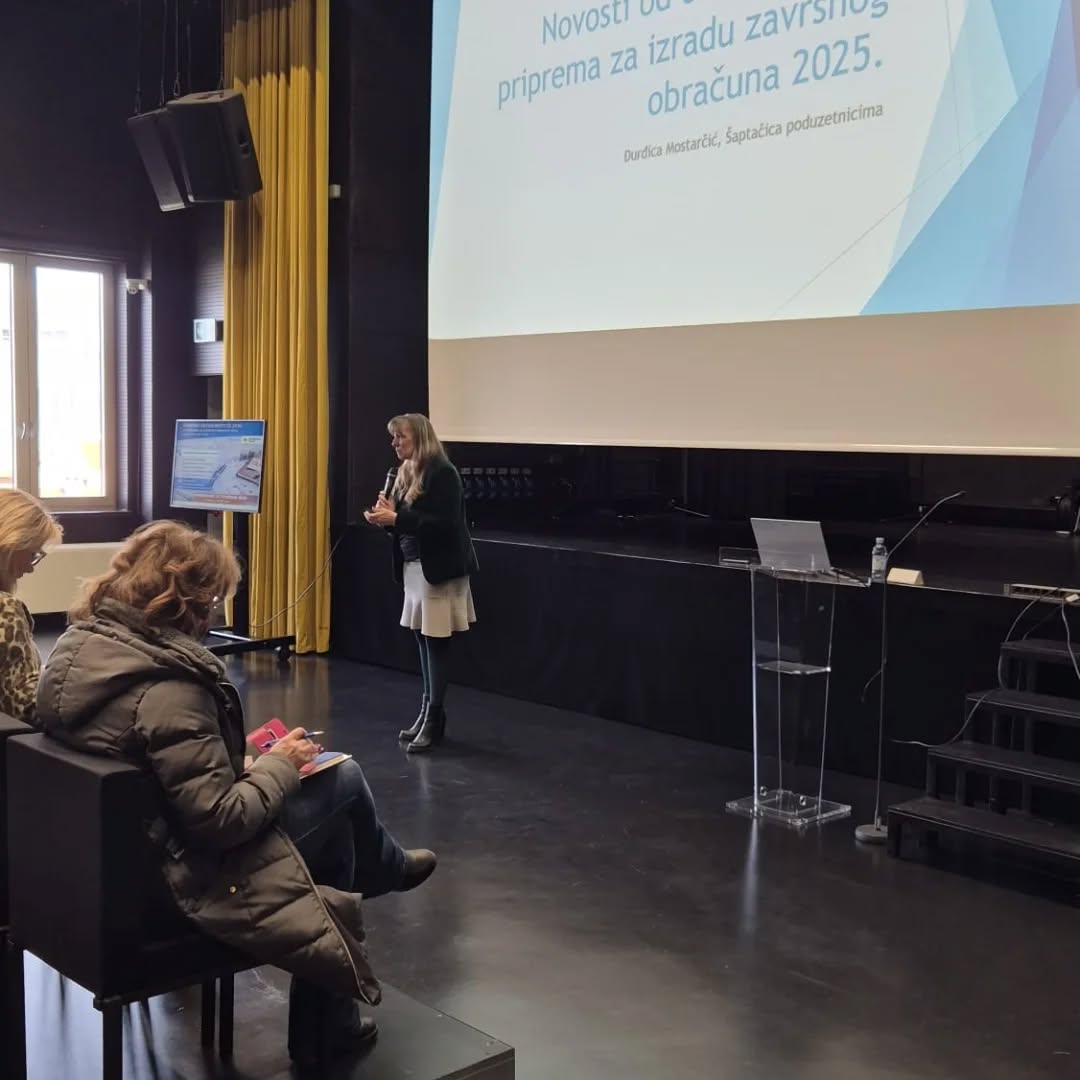 Udruženje obrtnika Zadar je u suradnji s Đurđicom Mostarčić, predsjednicom Sekcije računovođa Hrvatske obrtničke komore, već tradicionalno održalo još jedan u nizu besplatni seminar za svoje članove na temu "Porezne aktualnosti za 2026. i priprema za završni obračun 2025. (paušal, dohodak i dobit)”. Seminar je održan 12. siječnja 2026. godine u trajanju od 9,30 do 12,30 sati, a prisustvovalo je 90-ak sudionika.