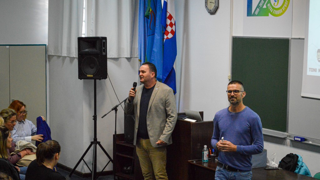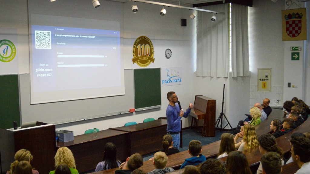 Zbog toga su Obrtnička komora Istarske županije te Udruženje obrtnika Pazin napravili sjajnu gestu,  te organizirali jutros u Plavoj dvorani Gimnazije i strukovne škole Jurja Dobrile u Pazinu veliko predavanje na kojem je bilo 200-tinjak učenika sedmih i osmih razreda.