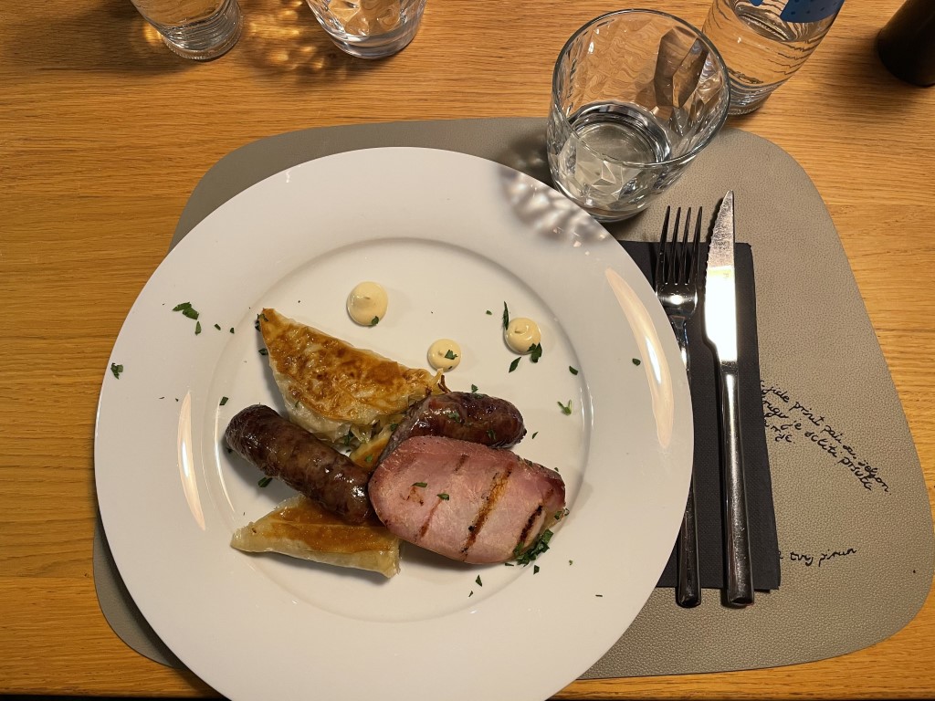 Konoba Dišpet (Zajci, Pićan): gratinirani kapuz s kobasicom, pancetom i čvarcima | ombolo s dvoličnim kapuzom | desert iznenađenja