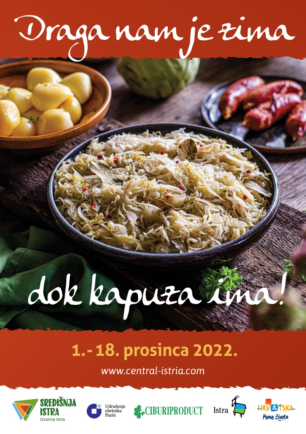 Manifestacija Draga nam je zima dok kapuza ima! odvijat će se od 1. do 18. prosinca 2022., u ugostiteljskim objektima na području TZ središnje Istre. U navedenom razdoblju, ugostitelji će nuditi menije koji će sadržavati tradicionalne istarske namirnice, a sve s ciljem jačanja gastronomske ponude središnje Istre u razdoblju posezone.